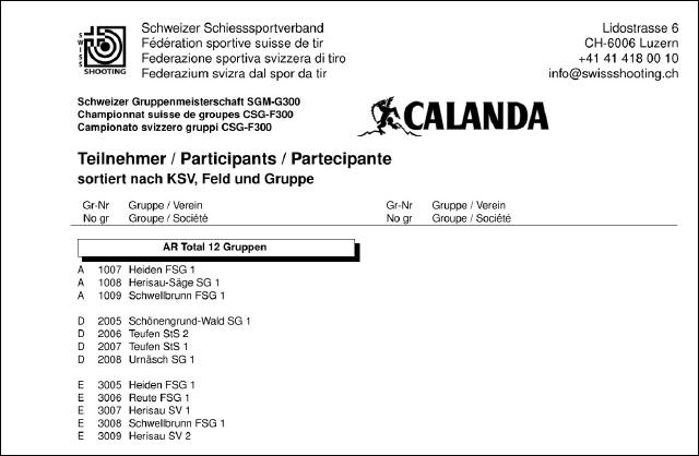 Teilnehmerliste der 1. Hauptrunde |